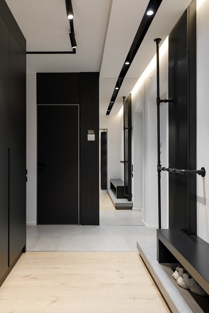Двушка со встроенными шкафами и гардеробной за стекломДизайн