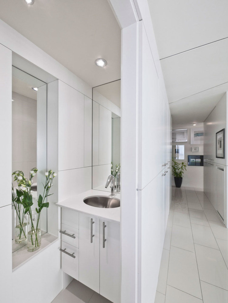 Фотография: Ванная в стиле Современный, Квартира, Цвет в интерьере, Дома и квартиры, Белый, Панорамные окна – фото на INMYROOM