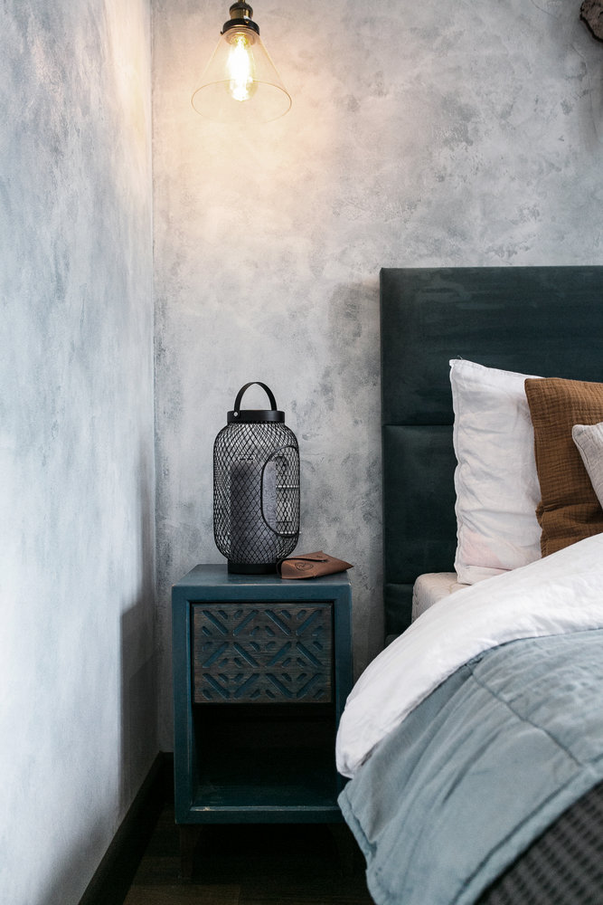 Двушка 37 м² с крохотной кухней и цементными стенамиДизайн