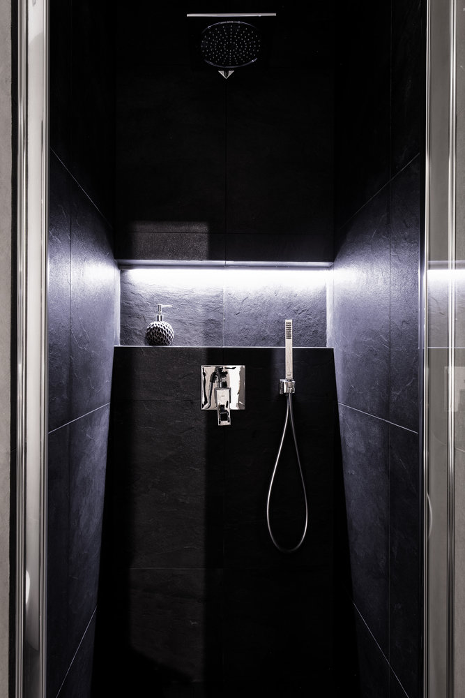 Двушка 37 м² с крохотной кухней и цементными стенамиДизайн