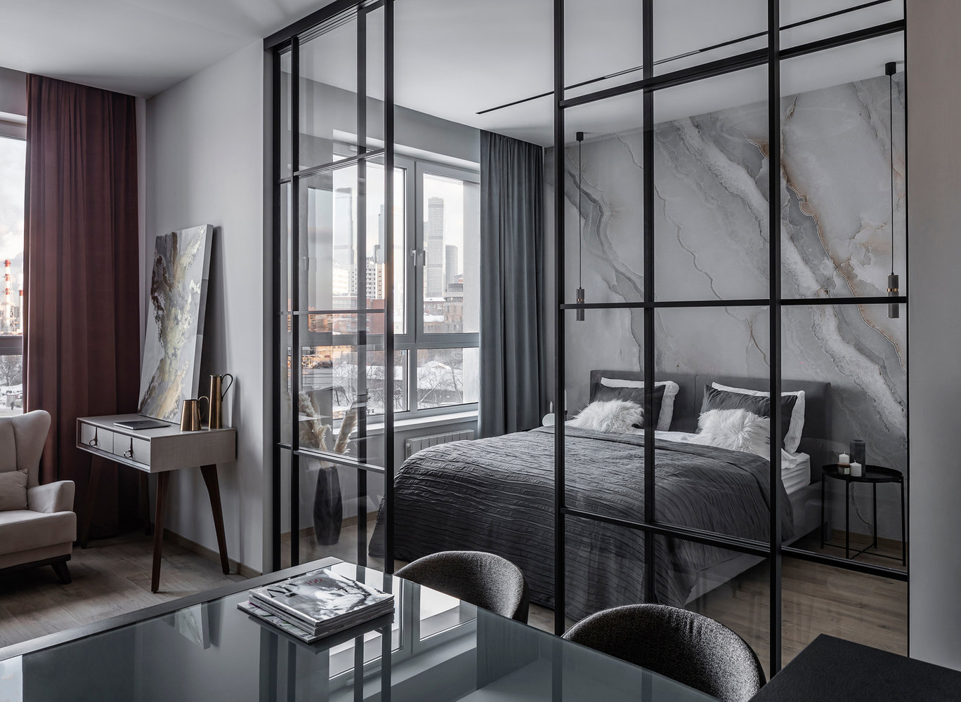 Фотография: Спальня в стиле Современный, Квартира, Проект недели, Москва, 2 комнаты, 40-60 метров, Ксения Харькова – фото на INMYROOM