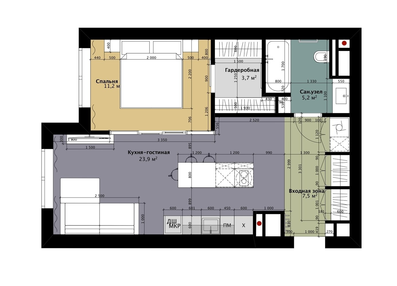 Фотография: Планировки в стиле , Современный, Квартира, Проект недели, Москва, 2 комнаты, 40-60 метров, Ксения Харькова – фото на INMYROOM
