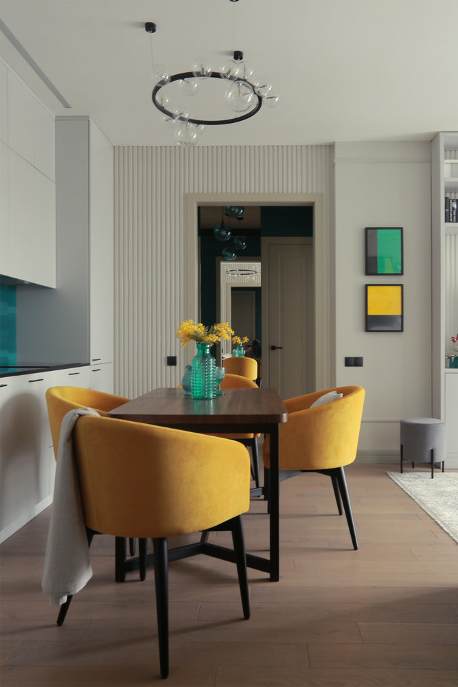 Основное напольное покрытие — белорусская инженерная доска под маслом Tarwood, выбрана за приятные тактильные ощущения, экологичность, красивый цвет.