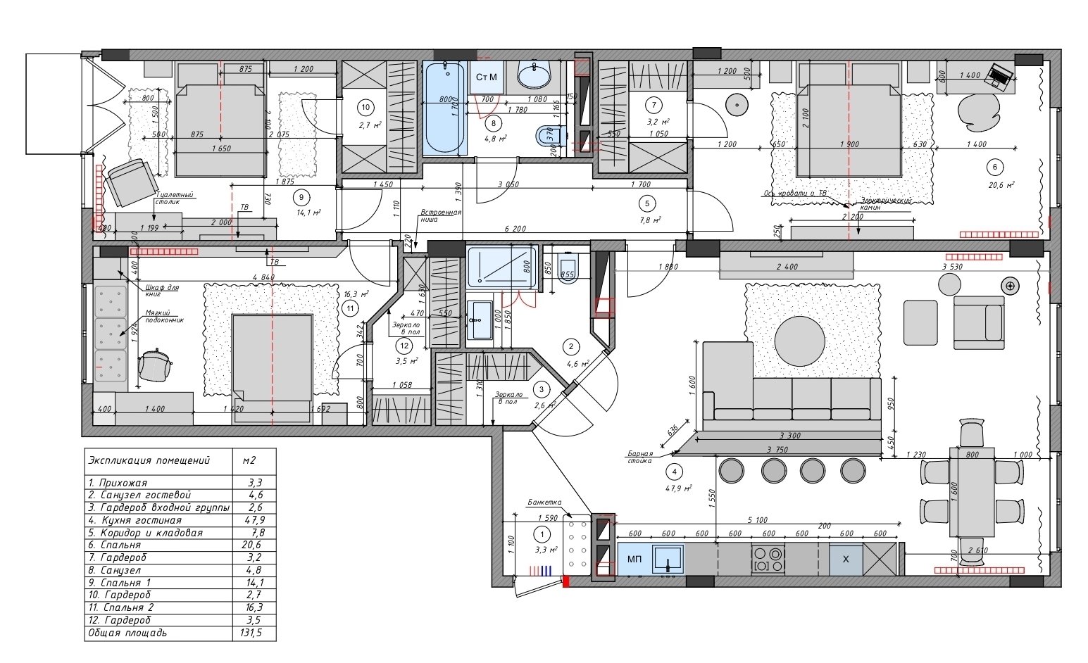 Объединили две двушки: получилась роскошная квартира с тремя спальнями и просторной кухней-гостинойДизайн