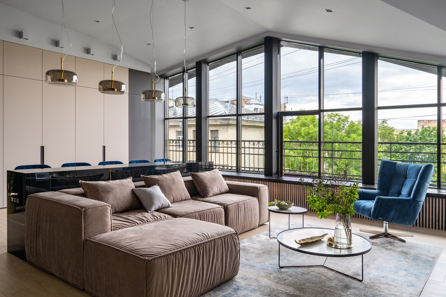 Мягкий модульный диван добавляет домашнего уюта.​ Но самое притягательное — это подоконник, на него можно не только присесть, но и прилечь.
