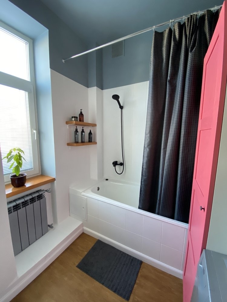 Батарею покрасили баллончиком, полки муж сделал сам.