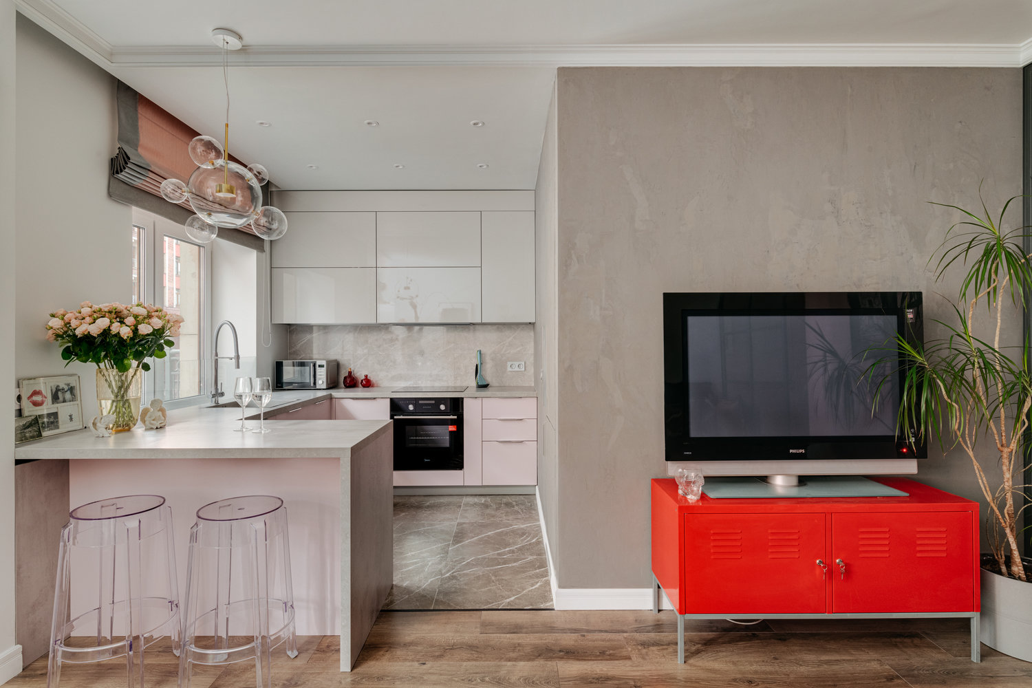 Холодильник покрасили, а коридор отделили прозрачной стеной: трешка с крутыми решениямиДизайн