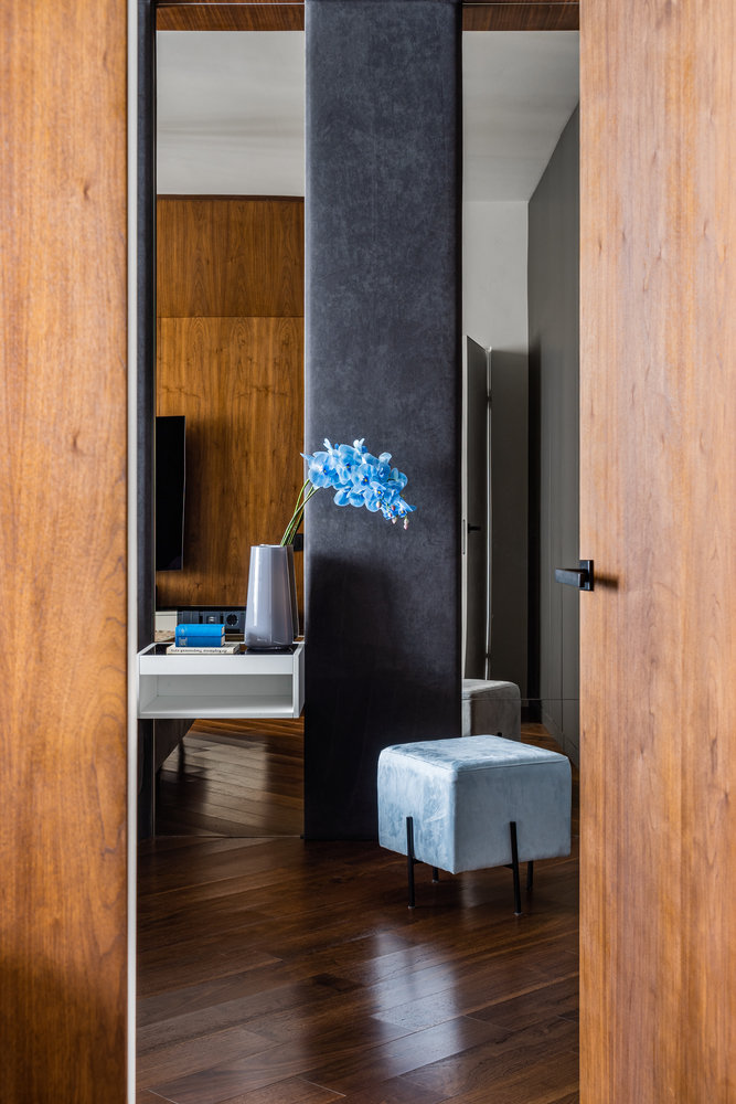 Интерьер двушки 70 м² в серых тонах с яркими акцентамиДизайн