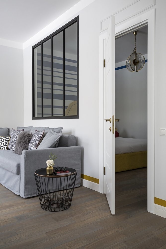 Стильная двушка 56 м² с окном между спальней и гостинойДизайн