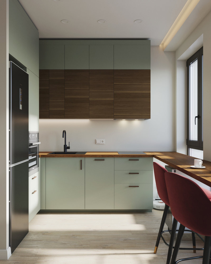 Маленькая студия 33 м² с кухней ИКЕА и уютным балкономДизайн