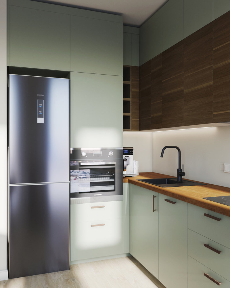 Маленькая студия 33 м² с кухней ИКЕА и уютным балкономДизайн