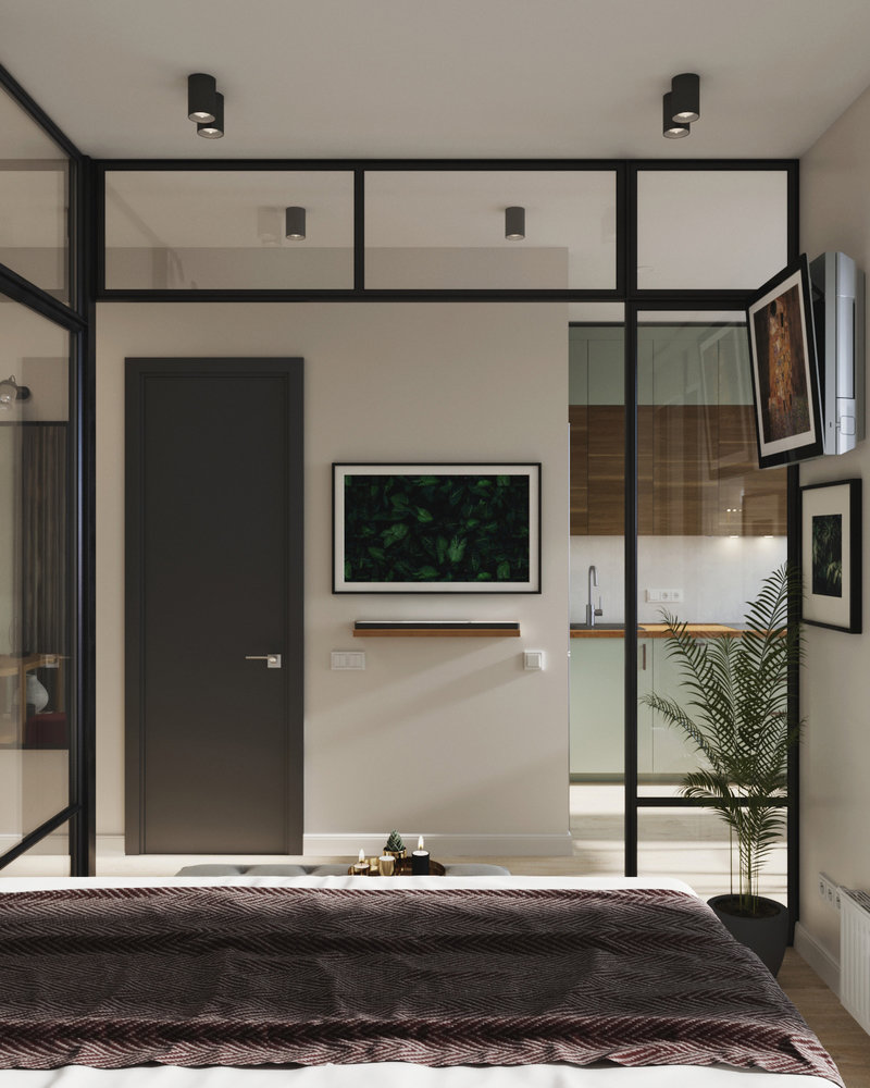 Маленькая студия 33 м² с кухней ИКЕА и уютным балкономДизайн