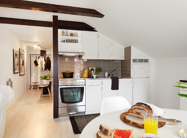 Фотография: Кухня и столовая в стиле Скандинавский, Малогабаритная квартира, Квартира, Дома и квартиры, Мансарда – фото на INMYROOM