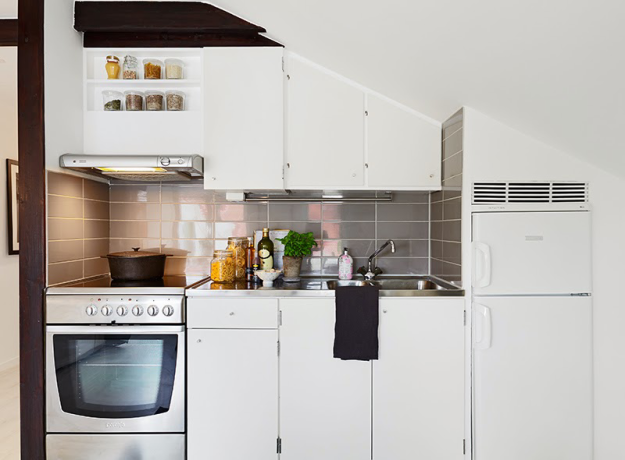 Фотография: Кухня и столовая в стиле Скандинавский, Малогабаритная квартира, Квартира, Дома и квартиры, Мансарда – фото на INMYROOM