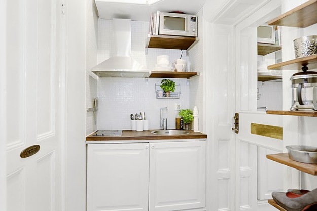 Фотография: Кухня и столовая в стиле Скандинавский, Малогабаритная квартира, Квартира, Цвет в интерьере, Дома и квартиры, Белый – фото на INMYROOM