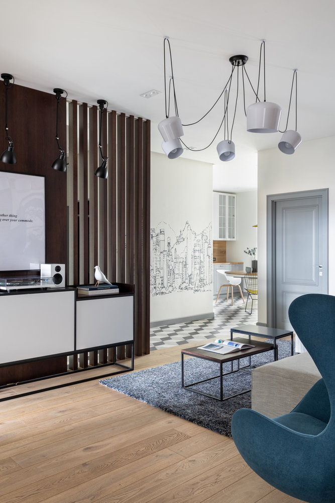 Ради детской гостиную пришлось перенести в коридор: стильная квартира для большой семьи4,7