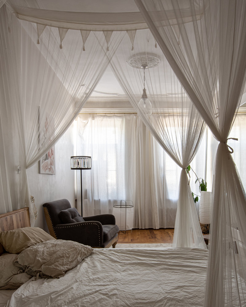 Фотография: Спальня в стиле Эклектика, Эко, Квартира, Проект недели, Санкт-Петербург, 3 комнаты, Более 90 метров, Эли Гордеева, интерьер в балийском стиле, стиль Бали, атмосфера Бали в интерьере – фото на INMYROOM