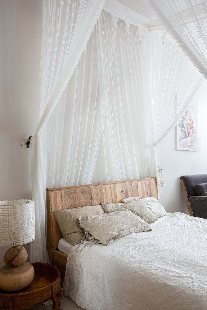 Фотография: Спальня в стиле Скандинавский, Эклектика, Эко, Квартира, Проект недели, Санкт-Петербург, 3 комнаты, Более 90 метров, Эли Гордеева, интерьер в балийском стиле, стиль Бали, атмосфера Бали в интерьере – фото на INMYROOM