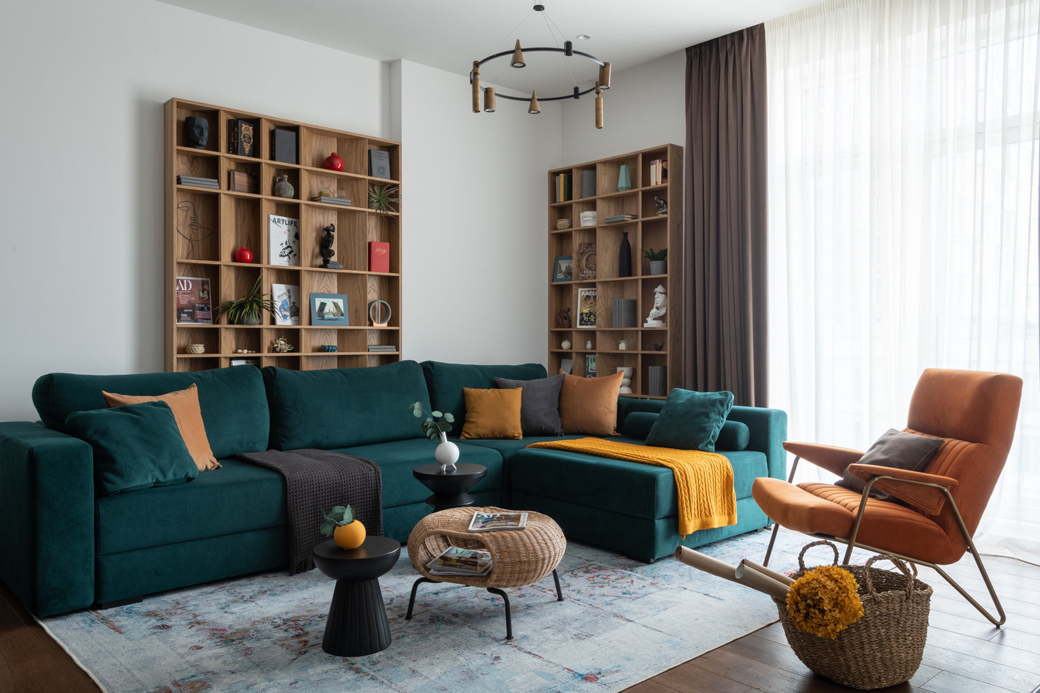 Фотография: Гостиная в стиле Современный, Квартира, Проект дня, Москва, 4 и больше, Более 90 метров, Юлия Волкова – фото на INMYROOM