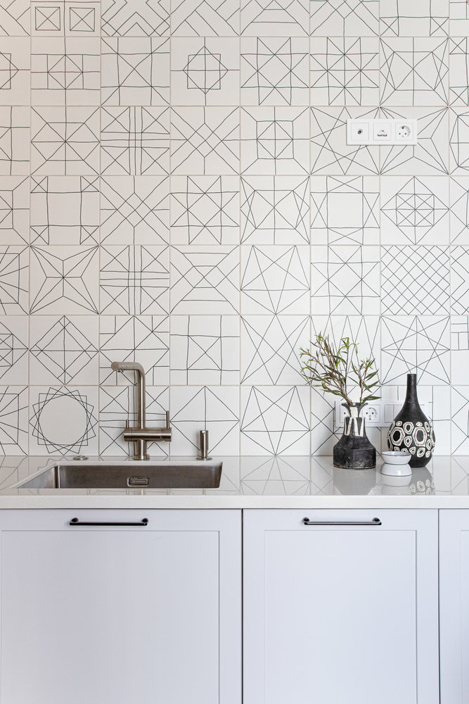Светлый интерьер двушки 59 м² с очень красивой плиткойДизайн