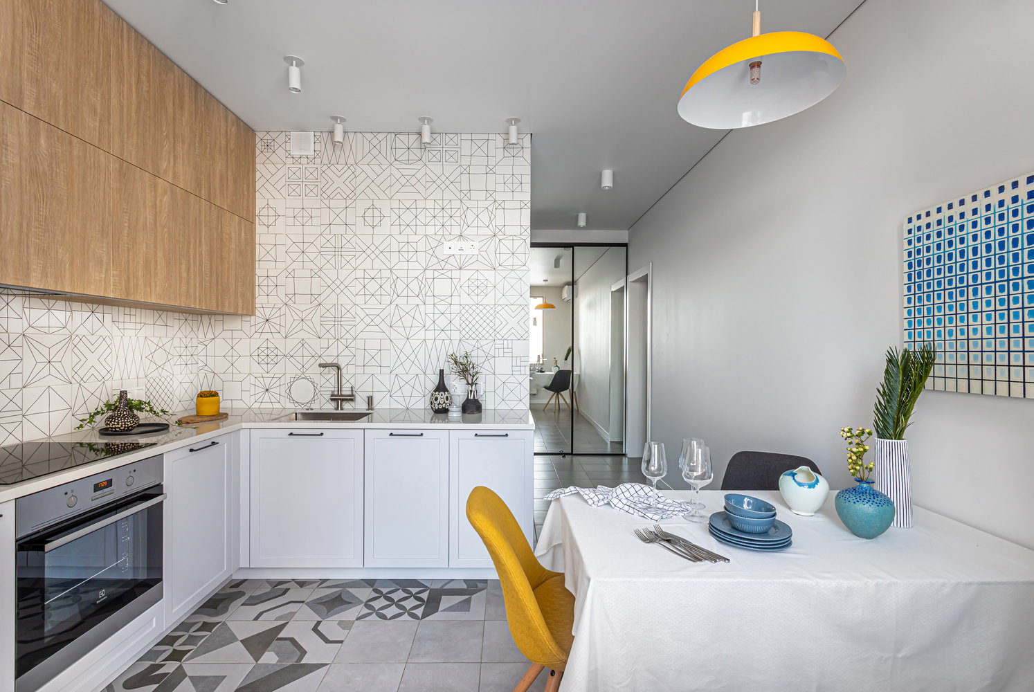 Светлый интерьер двушки 59 м² с очень красивой плиткойДизайн