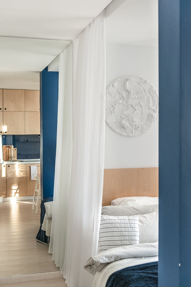 Панно из штукатурки Анна Букаева сделала совместно с коллегой, оно весит около семи килограммов. Постер на лоджии привезла из Парижа. Тарелочки на стене расписывала сама.