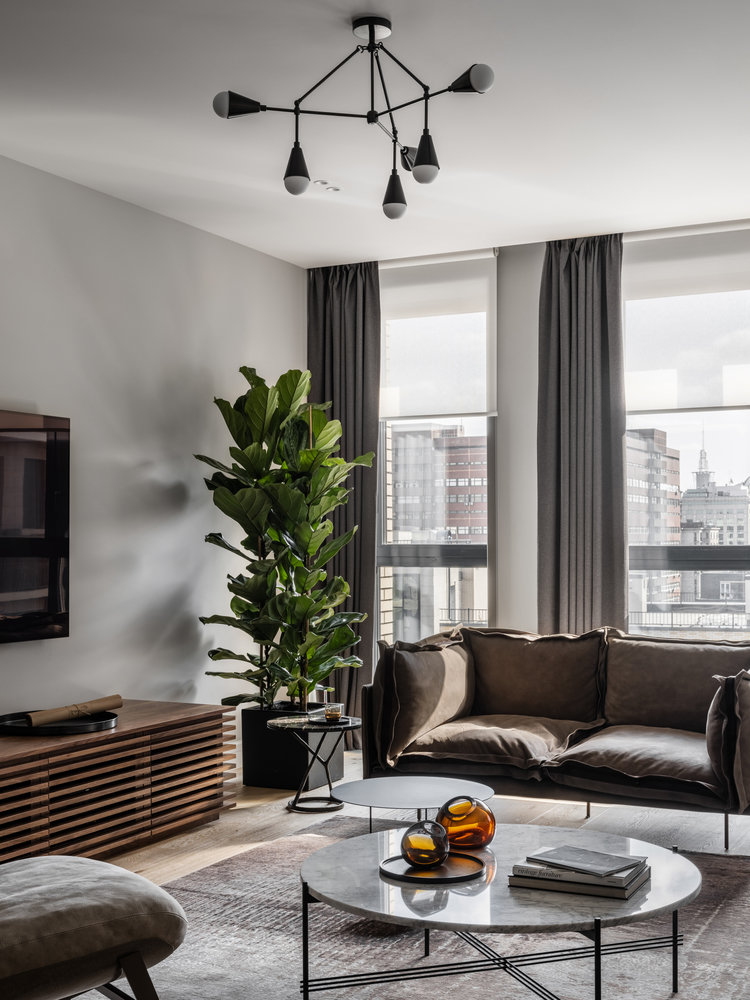 Фотография: Гостиная в стиле Современный, Квартира, Проект недели, Москва, 3 комнаты, Более 90 метров, Малика Нурлан – фото на INMYROOM