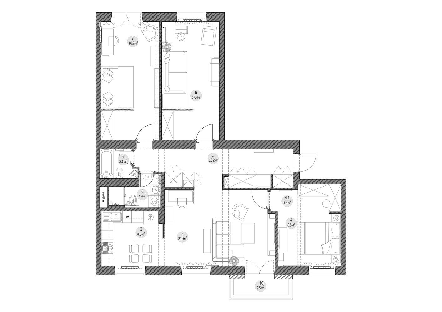 Фотография:  в стиле , Эклектика, Квартира, Проект недели, Москва, Сталинка, Кирпичный дом, 4 и больше, Более 90 метров, Евгения Костенко, Руслан Типаев – фото на INMYROOM