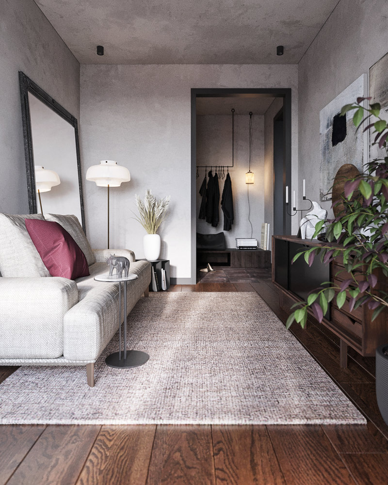 Черная кухня, отделка под бетон и металл, розовые акценты: однушка, способная поразить4,5