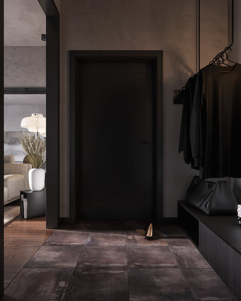 Черная кухня, отделка под бетон и металл, розовые акценты: однушка, способная поразить4,6