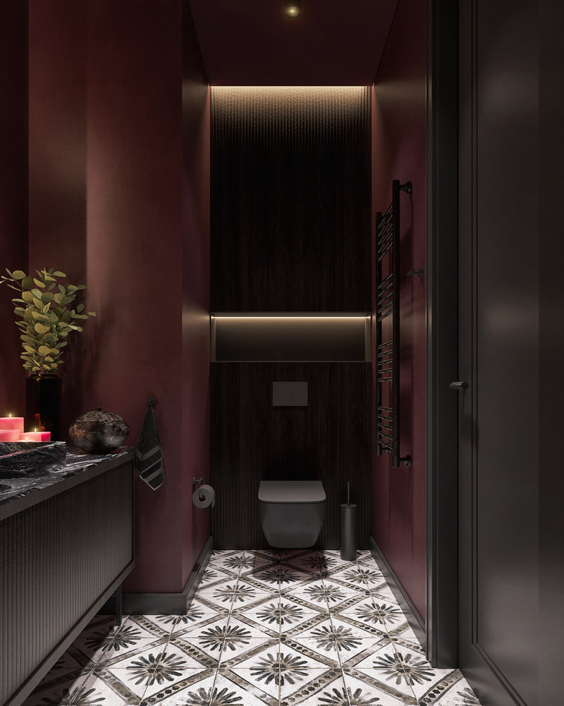 Черная кухня, отделка под бетон и металл, розовые акценты: однушка, способная поразить4,5