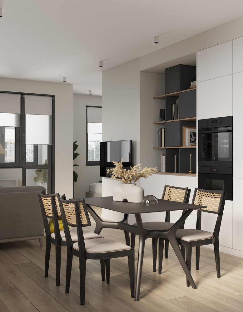 Сочетание дерева, ярко выраженного мрамора, гипсовых панелей в отделке, ротанга и черных элементов смотрится очень органично.