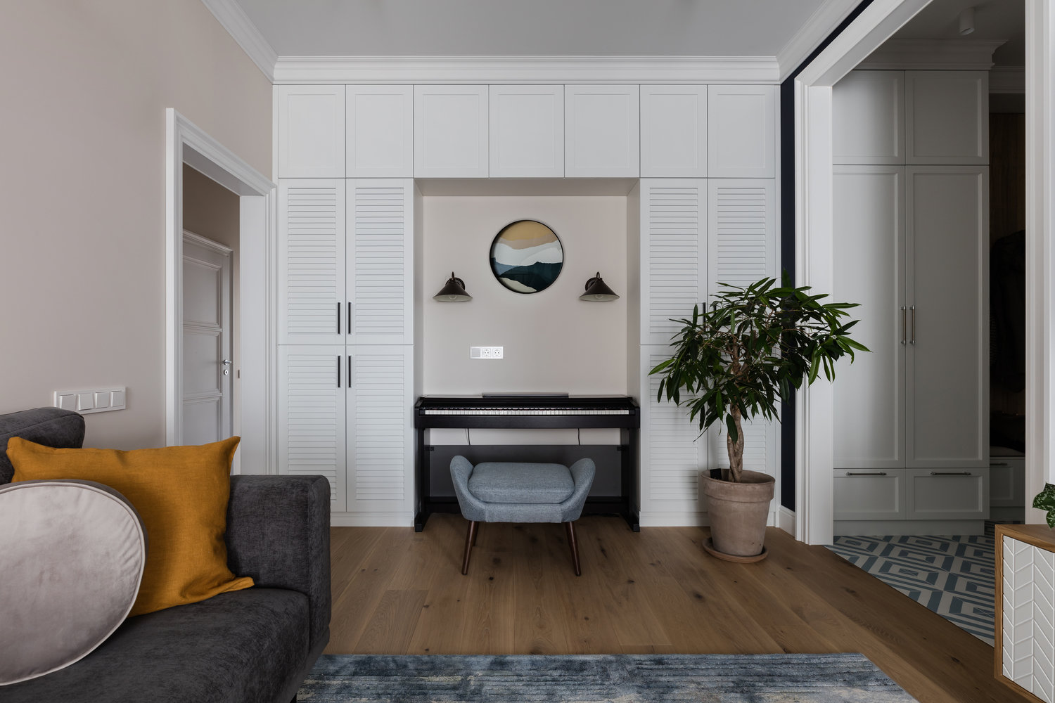 Фотография: Гостиная в стиле Скандинавский, Современный, Квартира, Проект дня, Санкт-Петербург, 3 комнаты, Более 90 метров, Яна Грошева, Lampa Design Studio – фото на INMYROOM