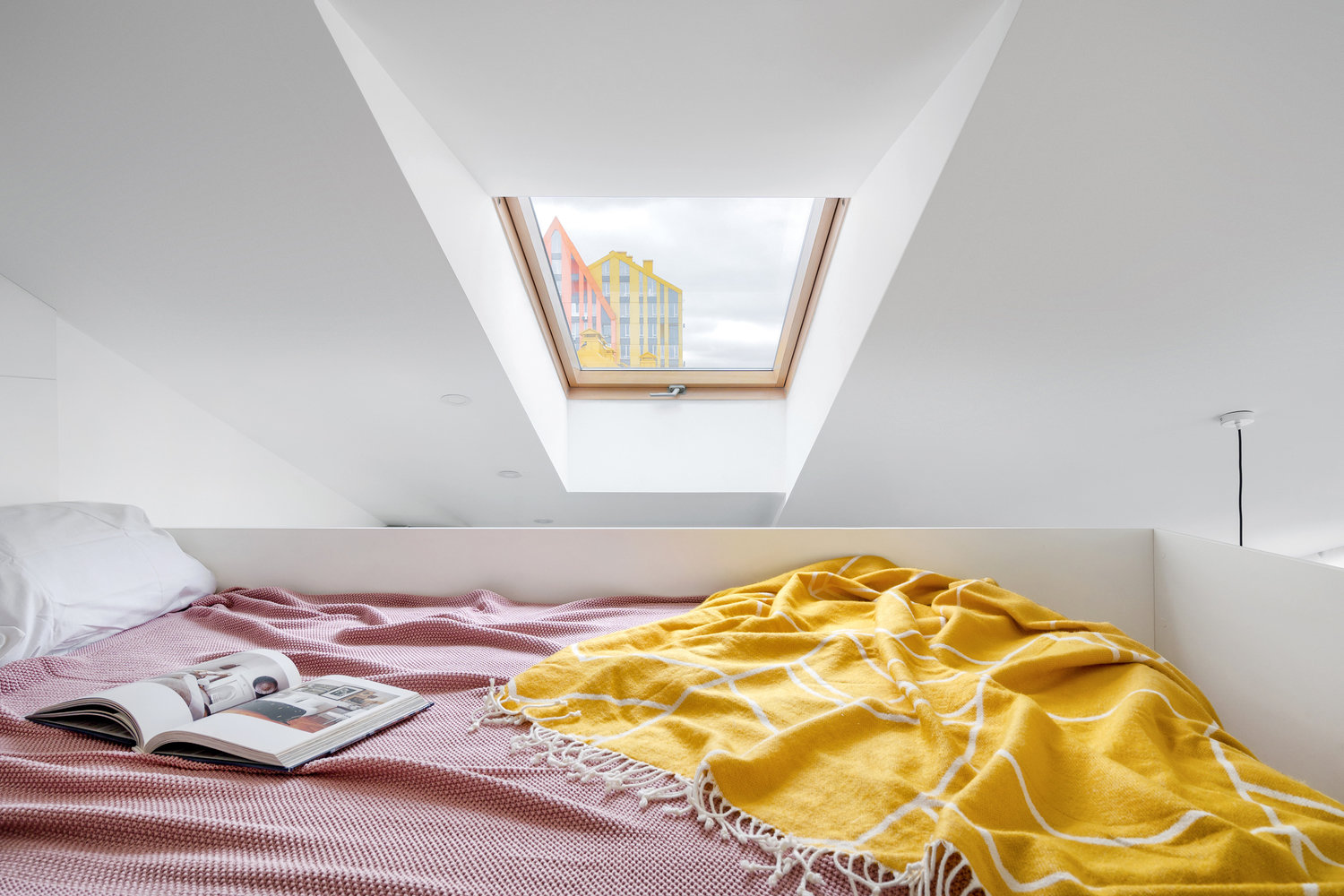 Модная студия 30 м² в мансарде со спальней на антресолиДизайн
