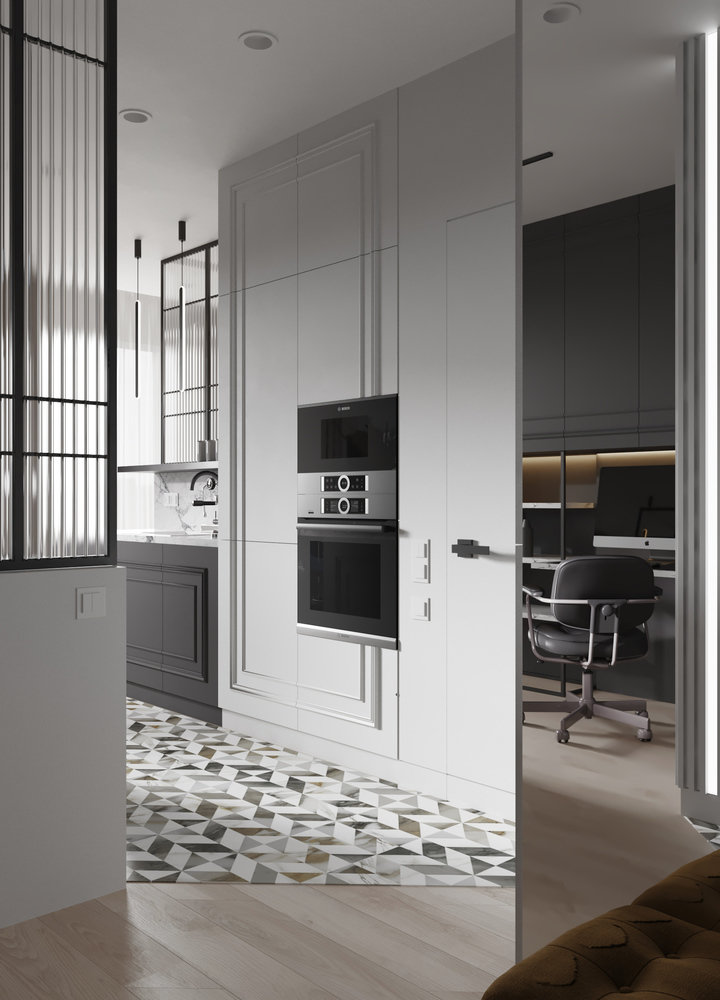Студия 48 м² с проходной кухней и спальней в нише4,9