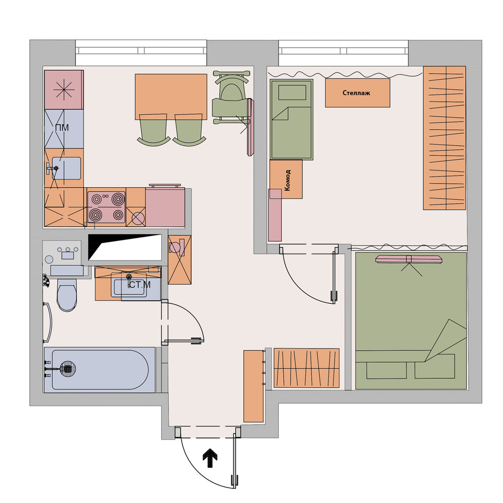 Фотография: Планировки в стиле , Современный, Малогабаритная квартира, Квартира, Проект недели, Москва, 1 комната, до 40 метров, Полина Дементьева – фото на INMYROOM