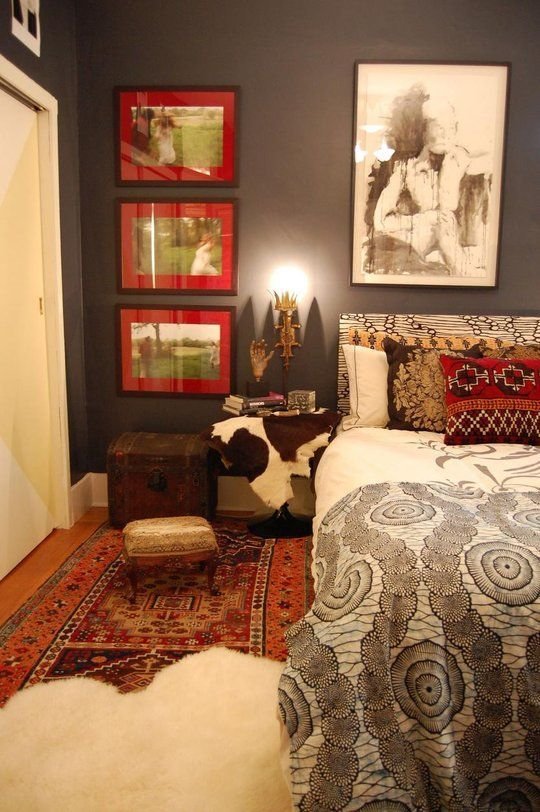 Фотография: Спальня в стиле Эклектика, Интерьер комнат, Подушки, Ковер – фото на INMYROOM