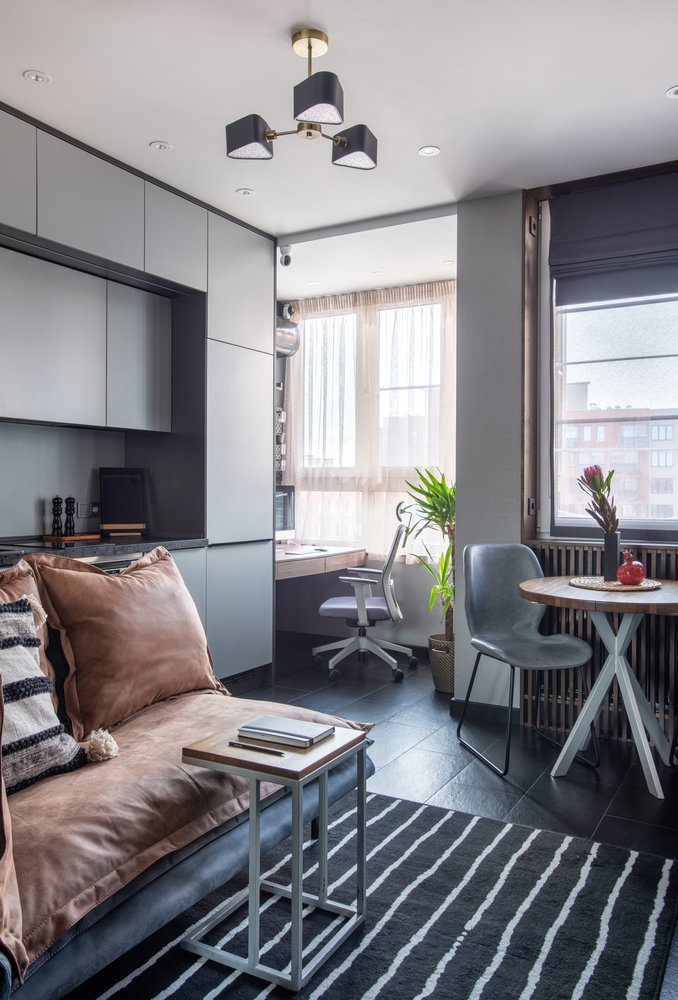 Как дизайнер уместила на 23 м² кухню, кабинет и спальнюДизайн