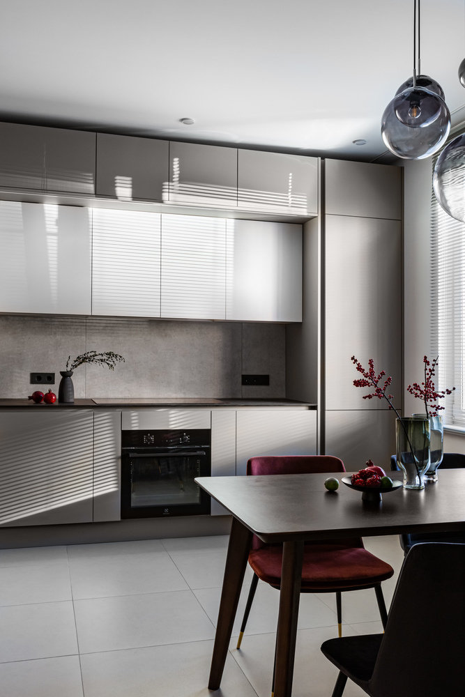 Строгий интерьер с яркими акцентами и скрытым хранениемДизайн