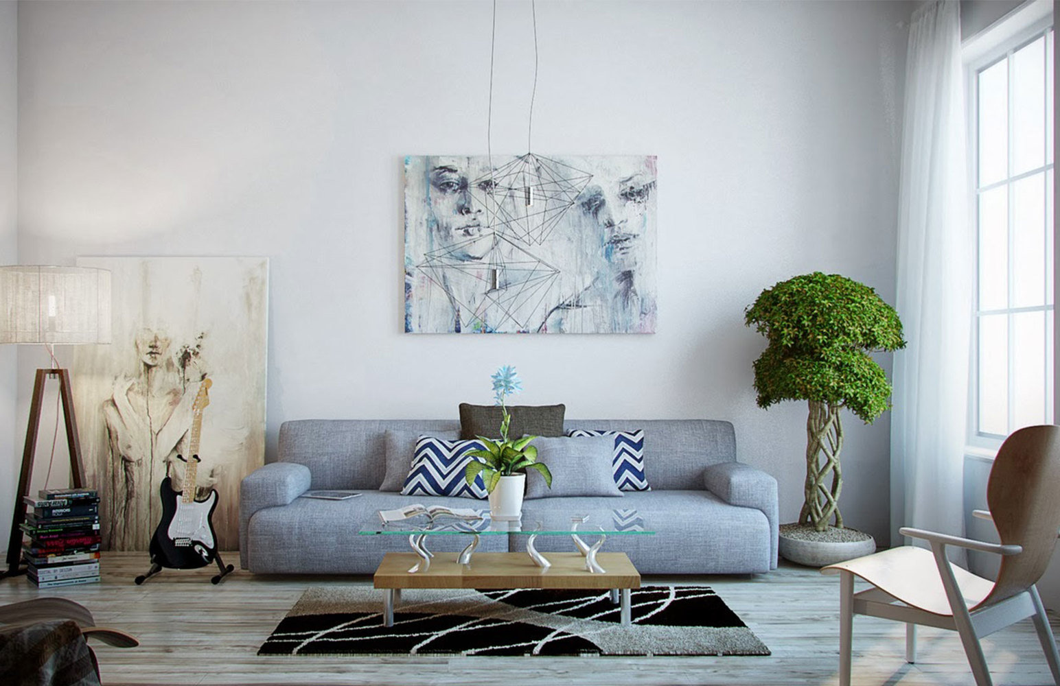 Фотография: Гостиная в стиле Лофт, Декор интерьера, Дизайн интерьера, Цвет в интерьере, Белый, Синий, Серый – фото на INMYROOM