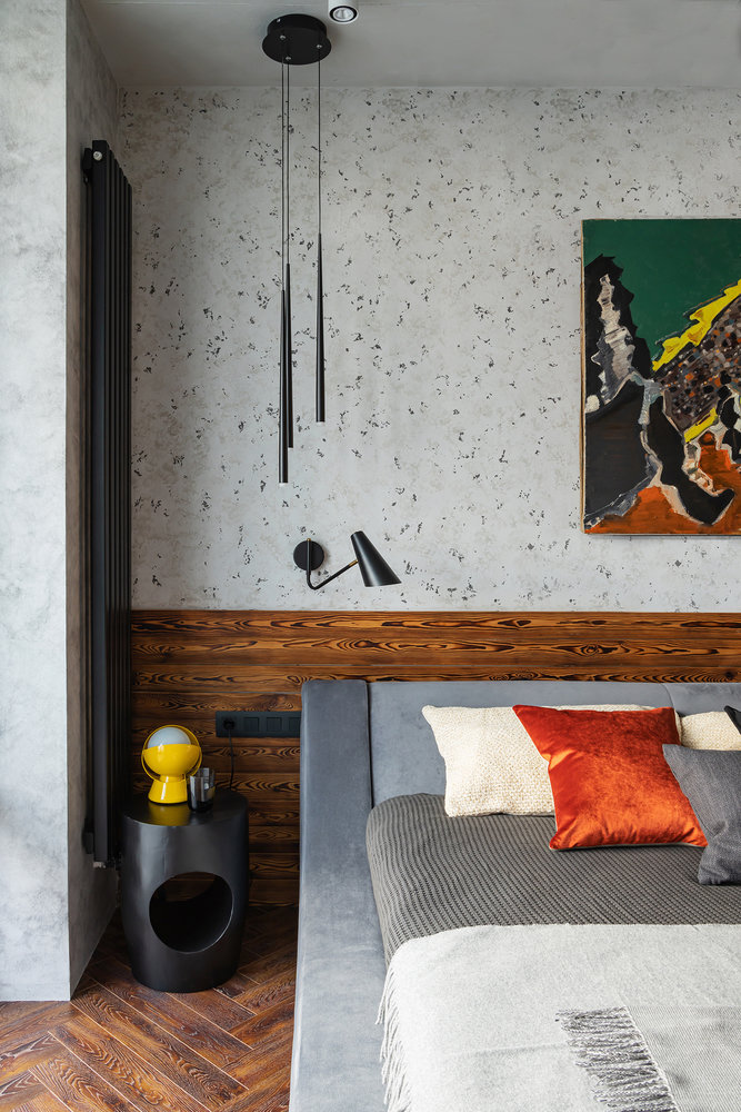 Трешка с радиальной планировкой и необычной отделкойДизайн