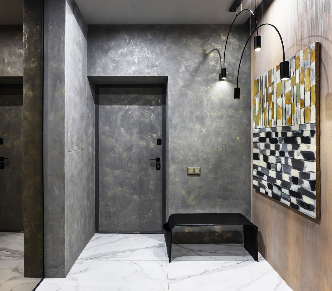 Трешка с радиальной планировкой и необычной отделкойДизайн