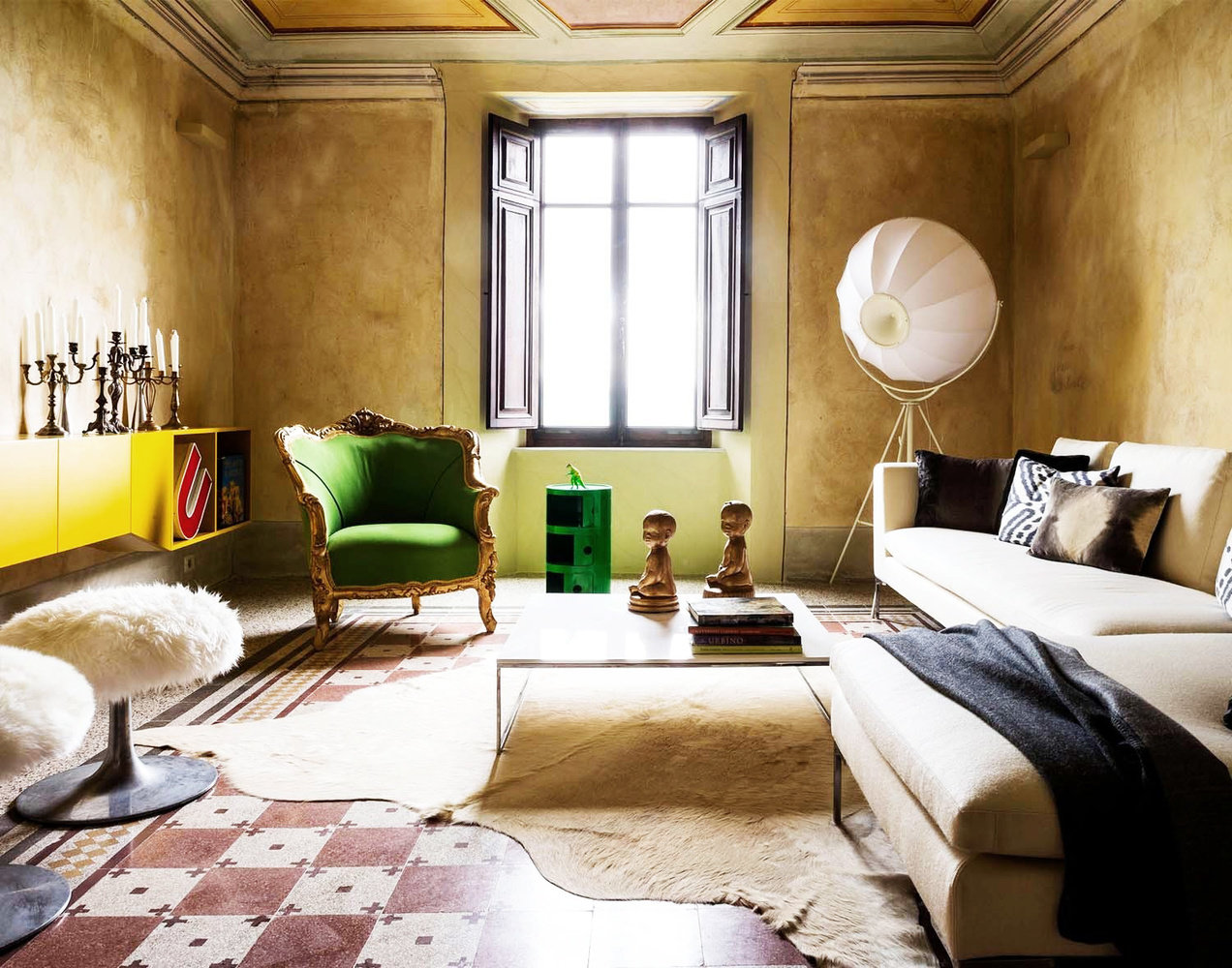 Фотография: Гостиная в стиле Эклектика, Декор интерьера, Дизайн интерьера, Цвет в интерьере, Черный, Желтый, Синий, Серый – фото на INMYROOM