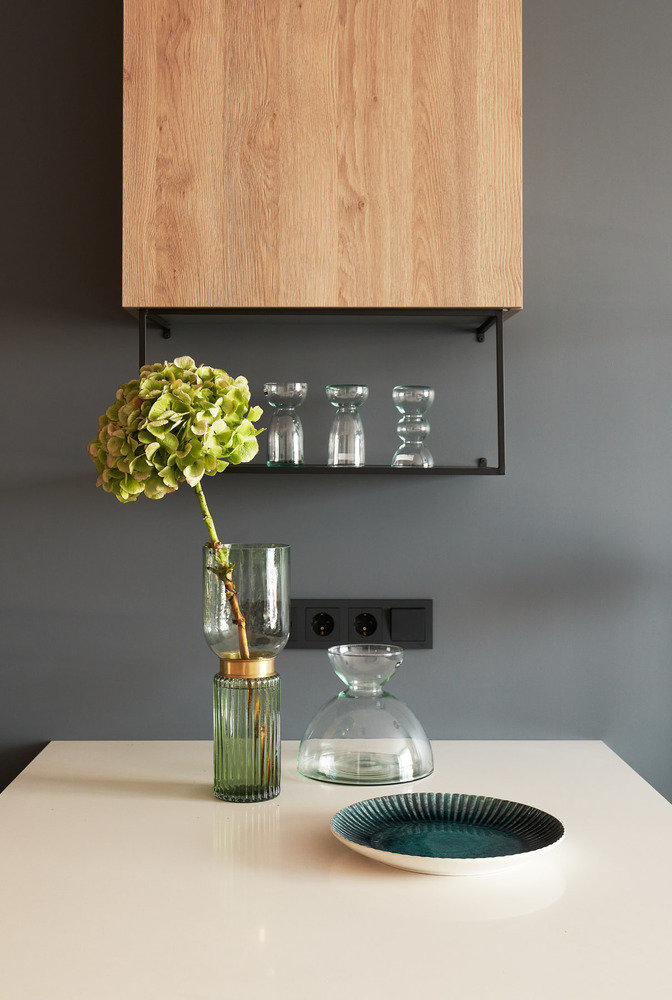Двушка 40 м² с кухонным островом и лавкой у окнаДизайн