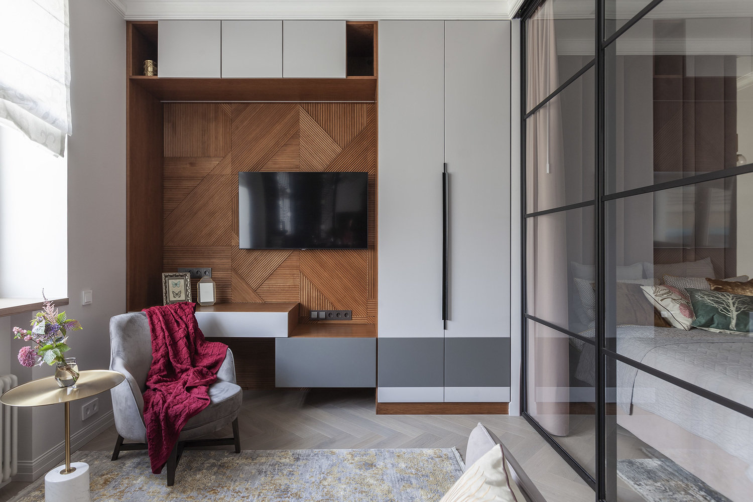 Классная евродвушка 45 м² с камином в сталинкеДизайн