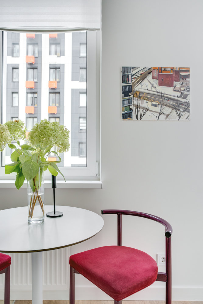 Искусство оживляет интерьер и придает характер. Картины у обеденного стола и в спальне — работы Марии Суворовой, серия «Московские дворы».