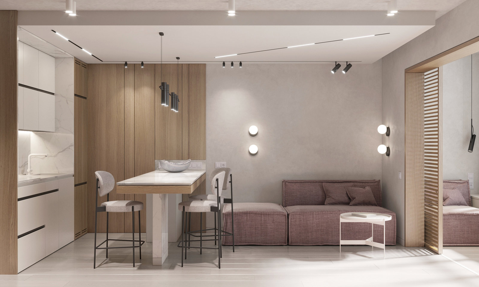 Фотография: Кухня и столовая в стиле Минимализм, Современный, Малогабаритная квартира, Квартира, Студия, Проект недели, Сочи, Алена Тимонина, Андрей Тимонин, до 40 метров – фото на INMYROOM