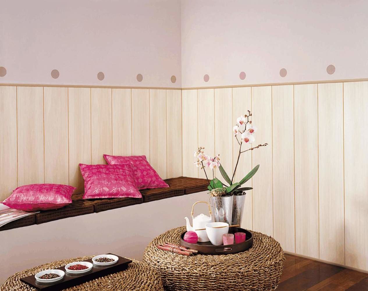 Фотография: Гостиная в стиле Восточный, Обои, Переделка, Плитка, Краска, Стеновые панели – фото на INMYROOM