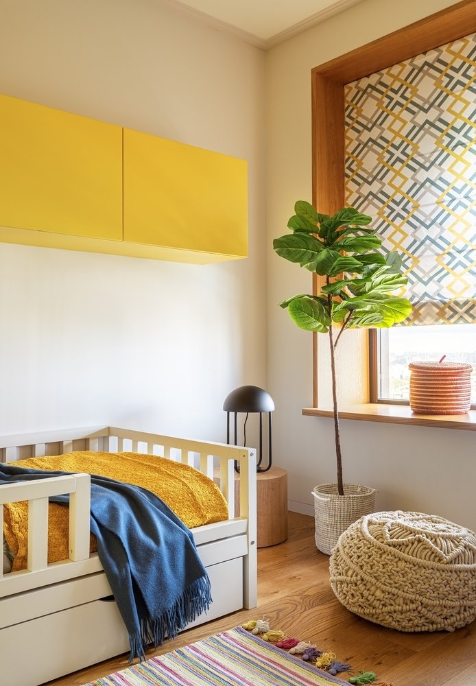 В детской старались максимально поднять все хранение, чтобы на полу оставалось больше места для игр.