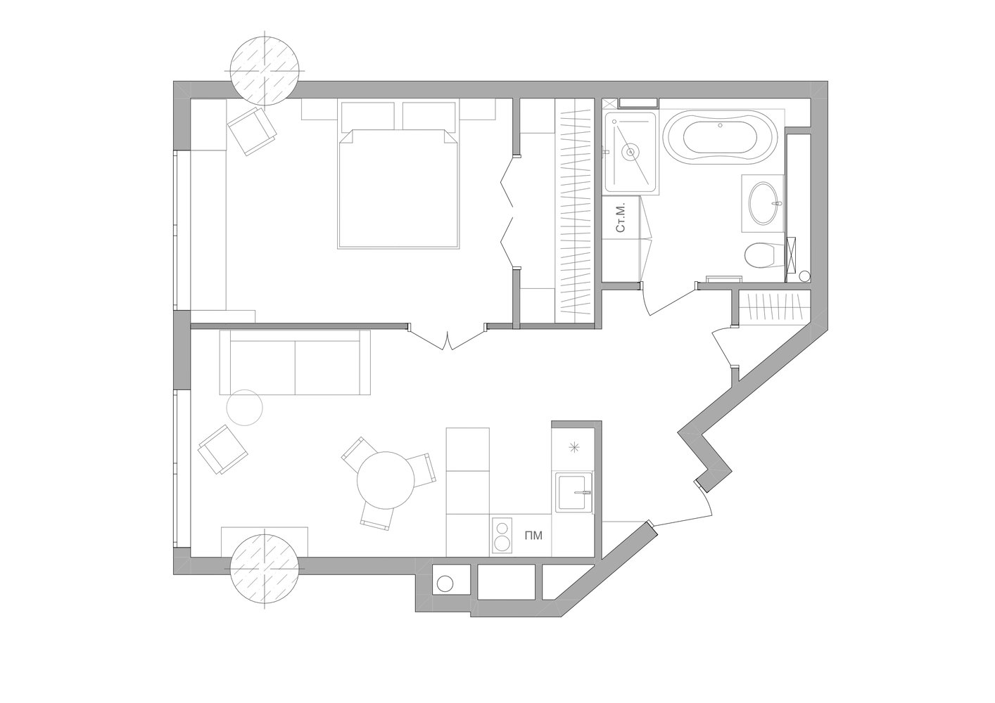 Светлый интерьер евродвушки 47 м² с нотками классикиДизайн